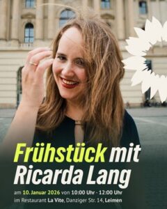 Ricarda Lang wird bei diesem besonderen Frühstück über aktuelle gesellschaftliche Themen sowie die politische Lage in Bund und Land sprechen und im Anschluss für Fragen, Austausch und Diskussion bereitstehen. Ergänzend gibt es eine Podiumsdiskussion mit unseren Landtagskandidaten Yannick Veits und Hermino Katzenstein.